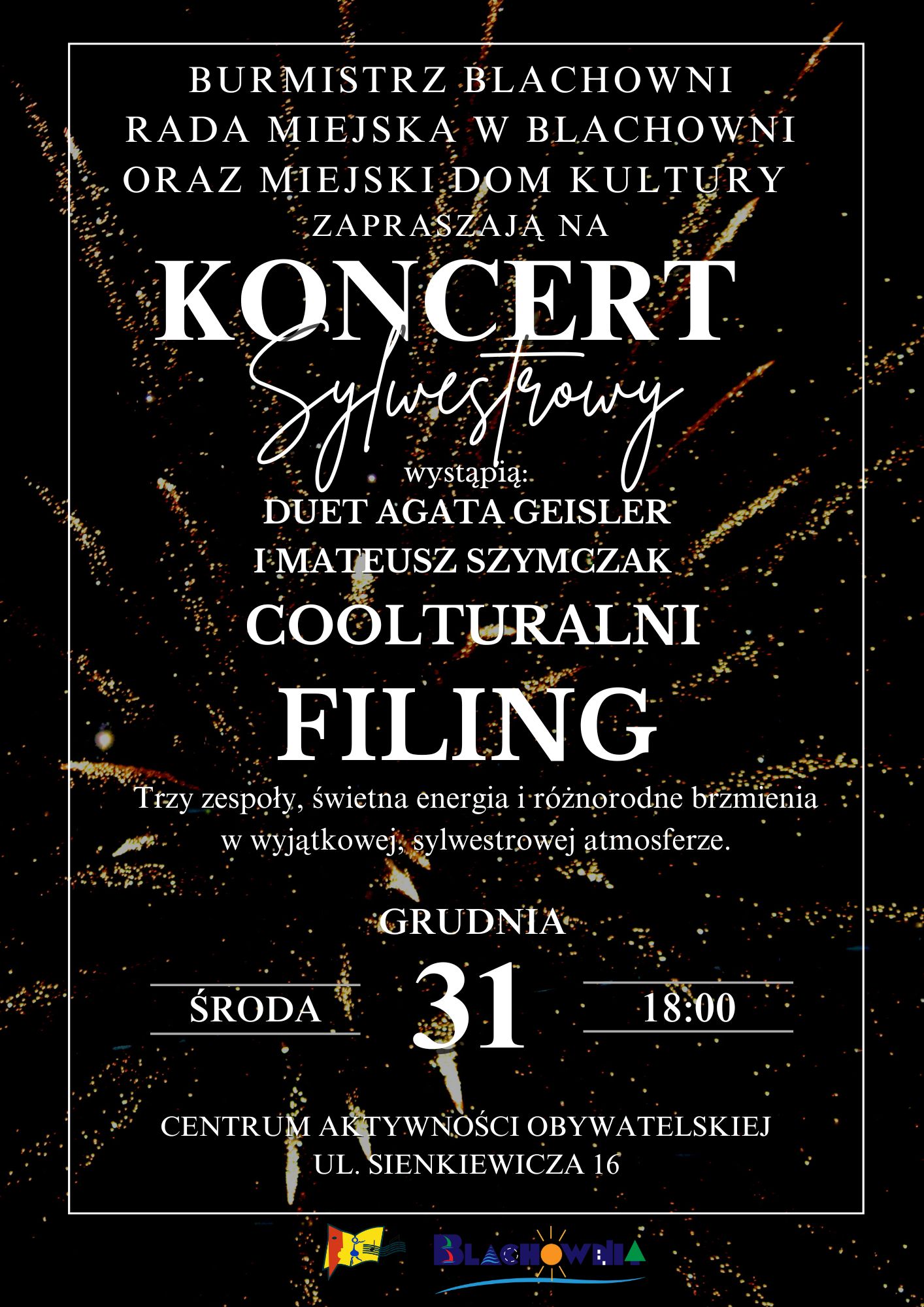 Miejski Dom Kultury w Blachowni zaprasza na Koncert Sylwestrowy, który odbędzie się 31 grudnia o godz. 18:00 w Centrum Aktywności Obywatelskiej...