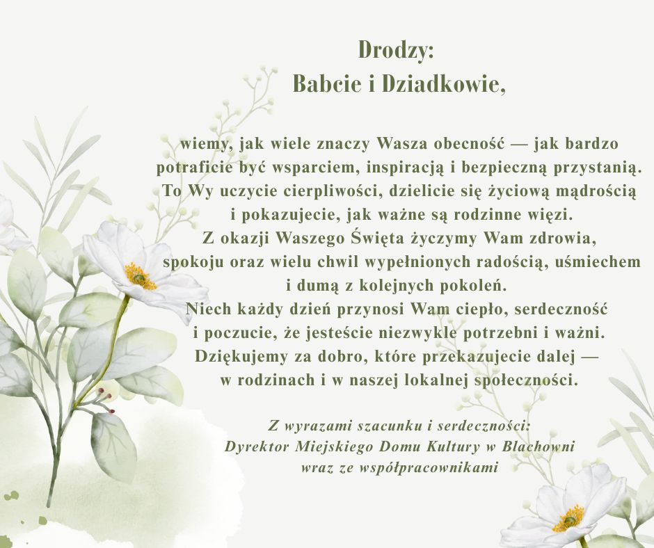 Miejski Dom Kultury w Blachowni zaprasza na Koncert Sylwestrowy, który odbędzie się 31 grudnia o godz. 18:00 w Centrum Aktywności Obywatelskiej...