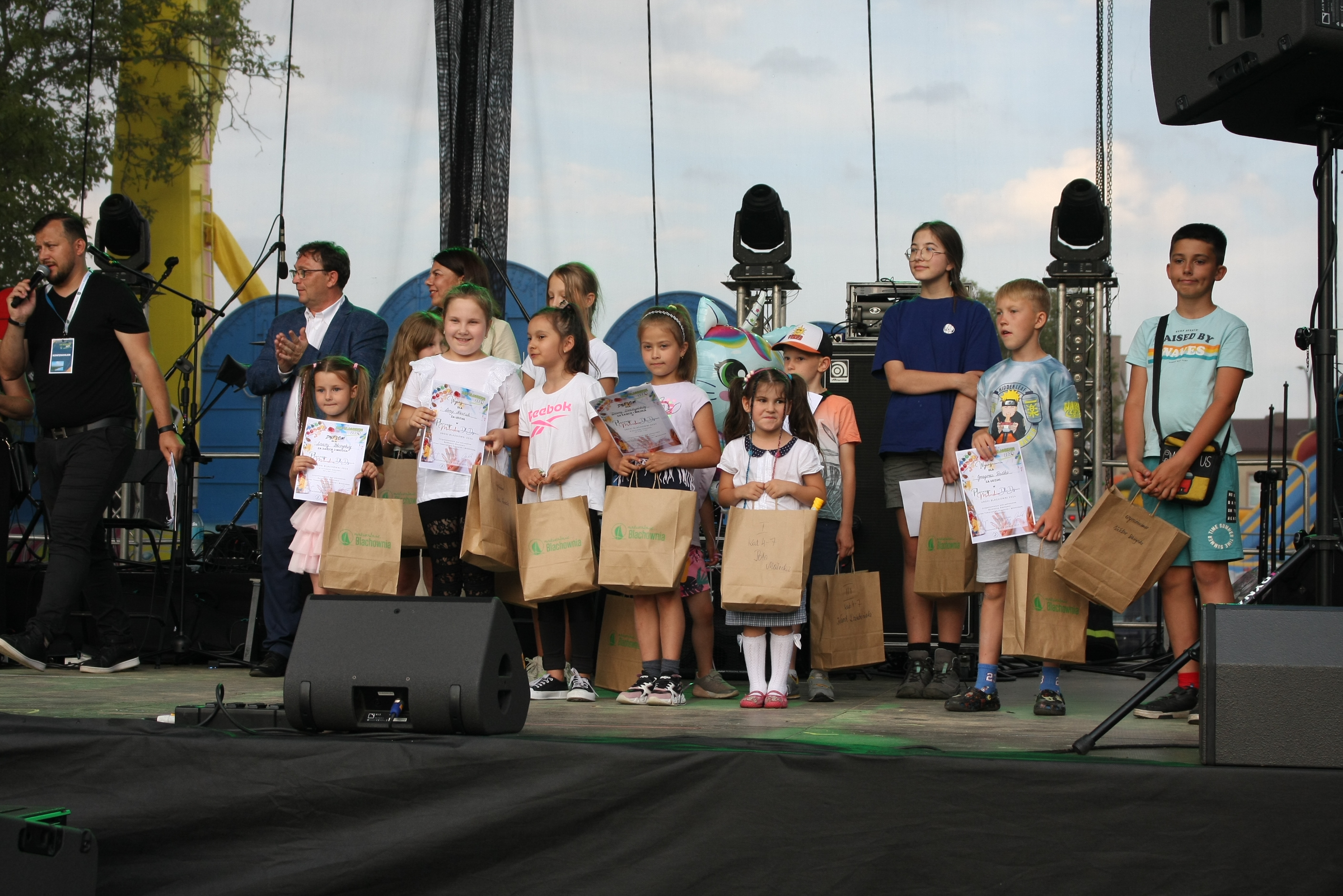 W drugim dniu obchodów Dni Blachowni 2024 mieliśmy mnóstwo atrakcji dla dzieci i młodzieży. Można było spróbować swoich sił w łowieniu ryb, na boisku sportowym Sahara prowadzone były gry i zabawy ruchowe. Na dużej scenie zaś występowały zespoły dziecięce z pobliskich szkół i przedszkoli w programach zarówno muzycznych, jak i tanecznych. W konkursie muzycznym wystąpiły dzieci i młodzież w trzech klasach wiekowych. Nagrody wręczał Burmistrz Blachowni Cezary Osiński oraz przewodnicząca Rady Miejskiej Edyta Mandryk. Odbyło się również wręczenie nagród dla laureatów konkursów plastycznych. Z kolejnych atrakcji muzycznych należy wymienić Zespół oJ TaM, Zespół Flow i gwiazdę wieczoru, Zespół Habakuk, którego lider pochodzi właśnie z Blachowni.