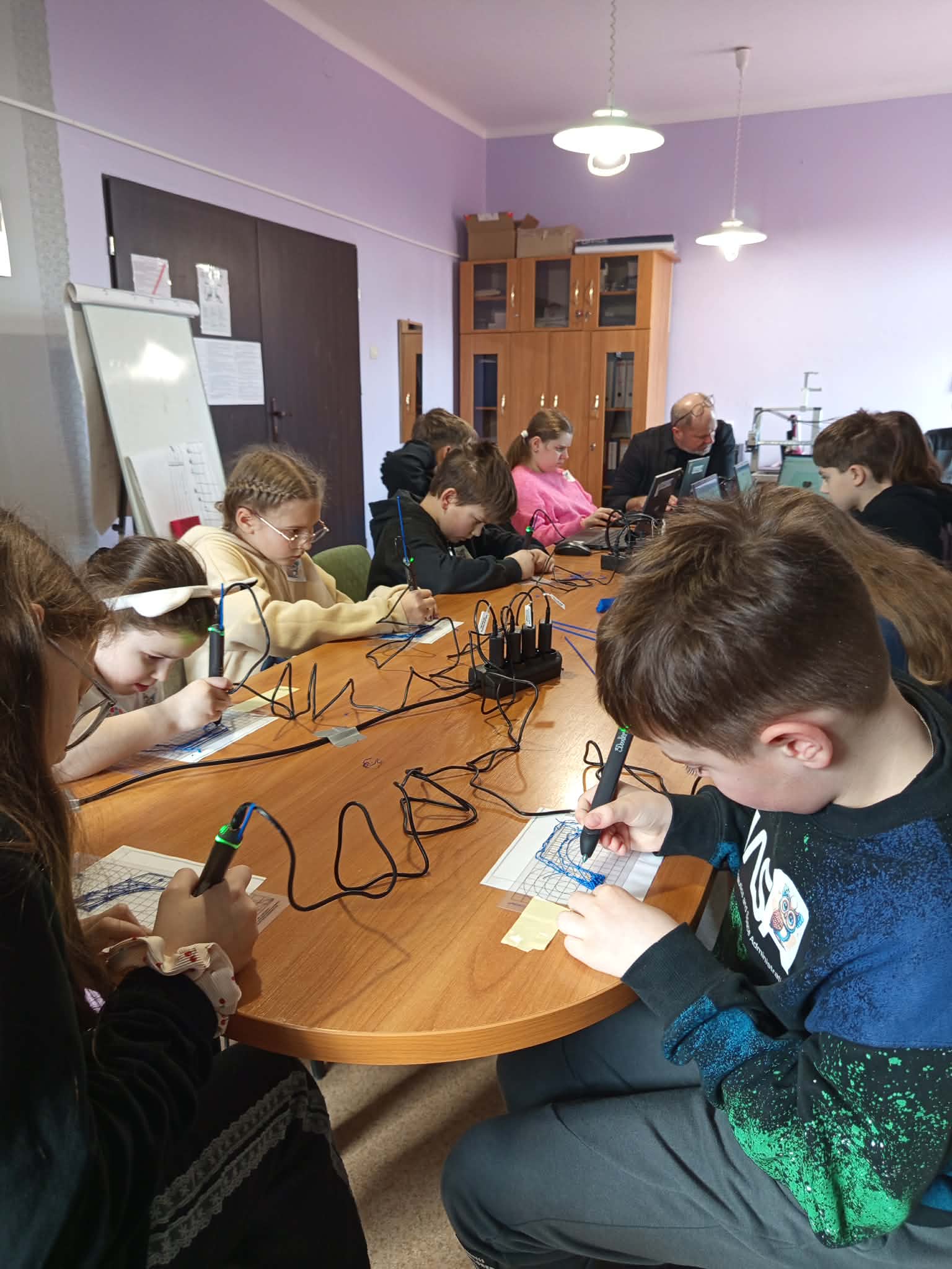 Po części integracyjnej uczestnicy rozpoczęli pracę w mniejszych grupach warsztatowych. Każda z nich miała okazję spróbować swoich sił w innych aktywnościach – od działań artystycznych, przez techniczne, aż po nowoczesne rozwiązania technologiczne.