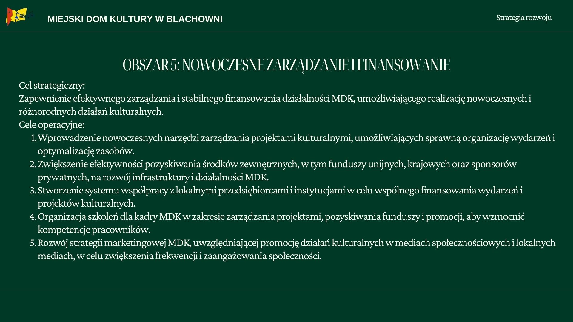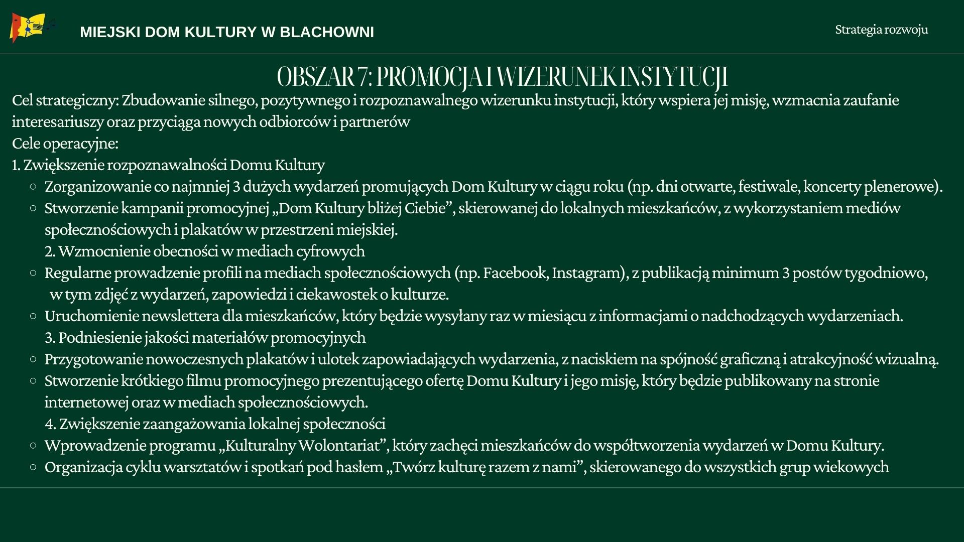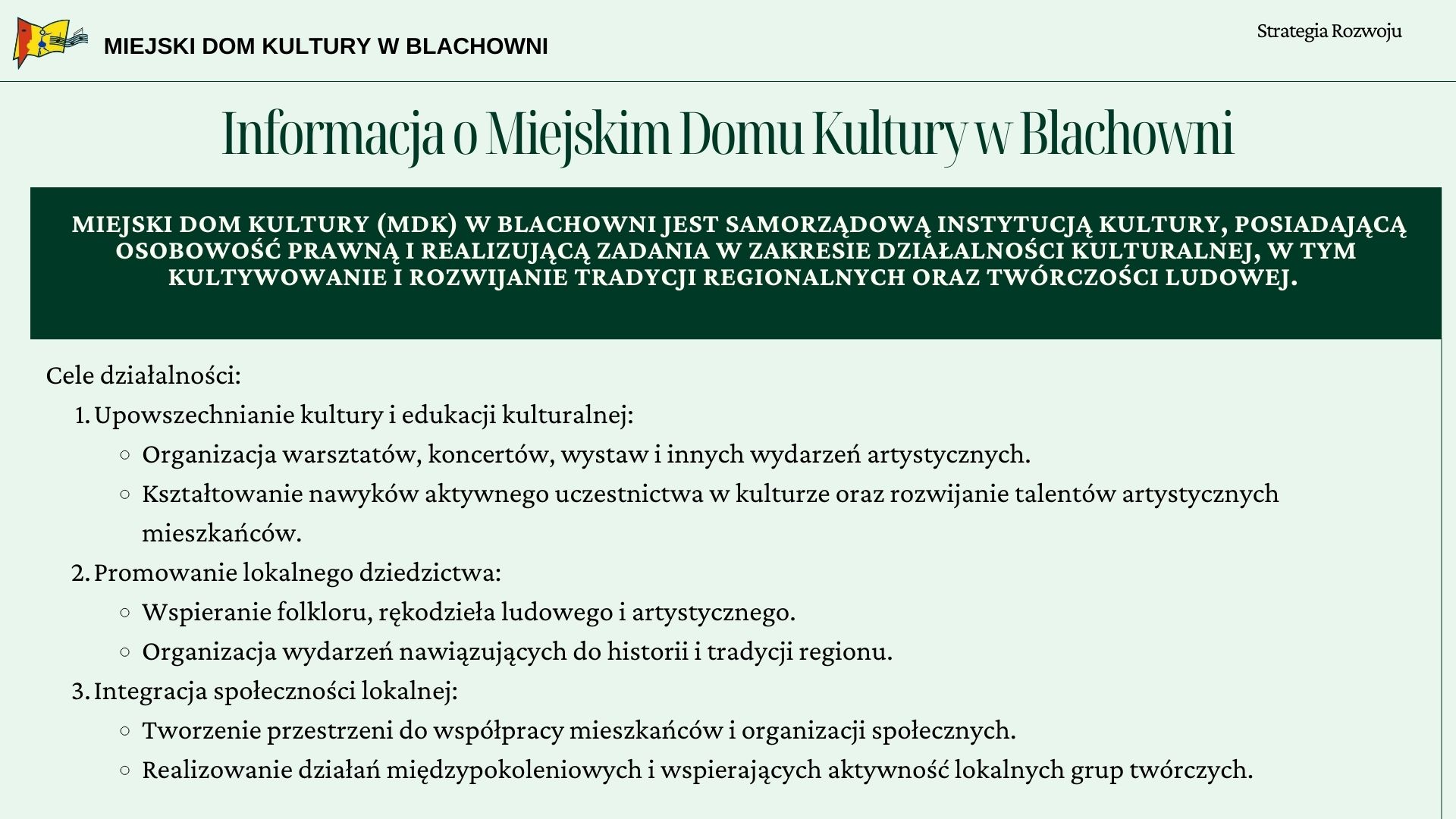 Strategia rozwoju Miejskiego Domu Kultury w Blachowni