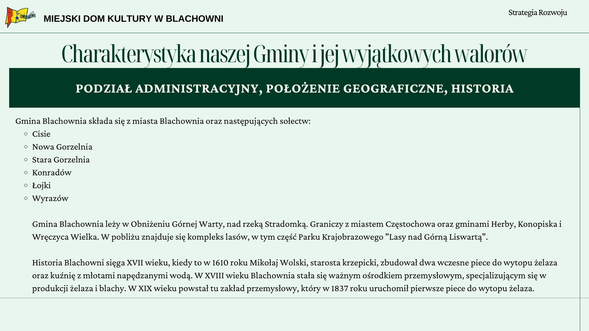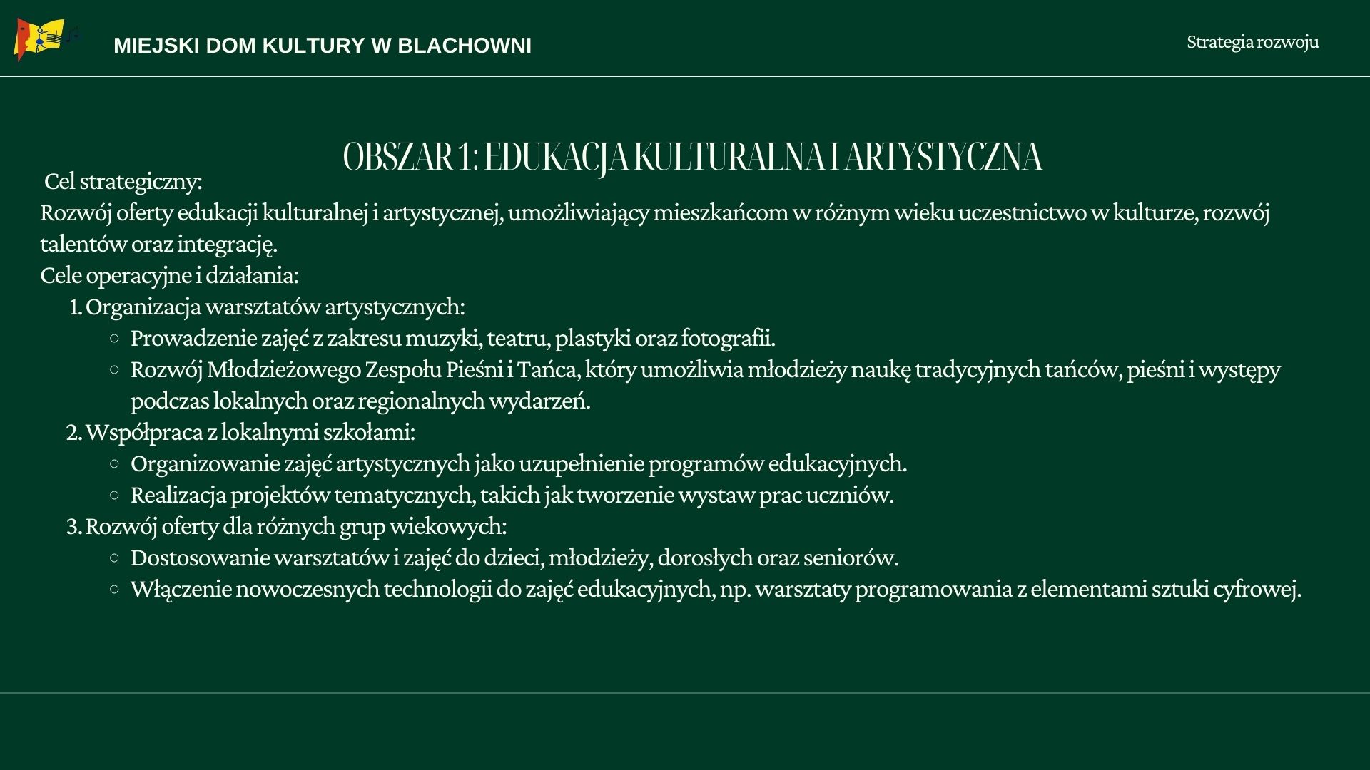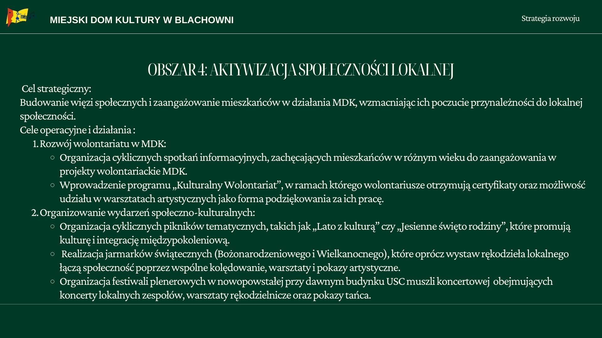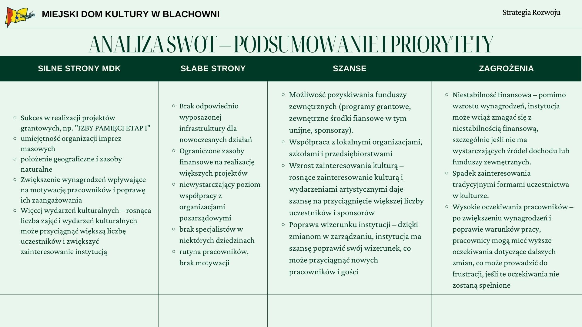 Strategia rozwoju Miejskiego Domu Kultury w Blachowni