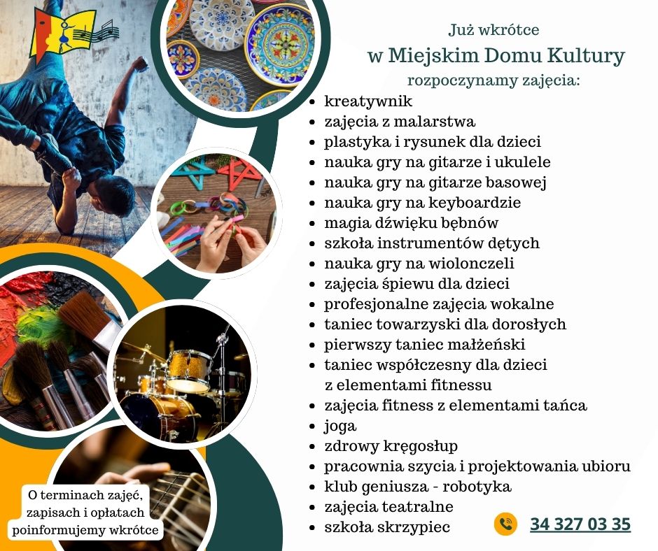 Miejski Dom Kultury w Blachowni serdecznie zaprasza dzieci, młodzież i dorosłych do udziału w różnorodnych zajęciach artystycznych...